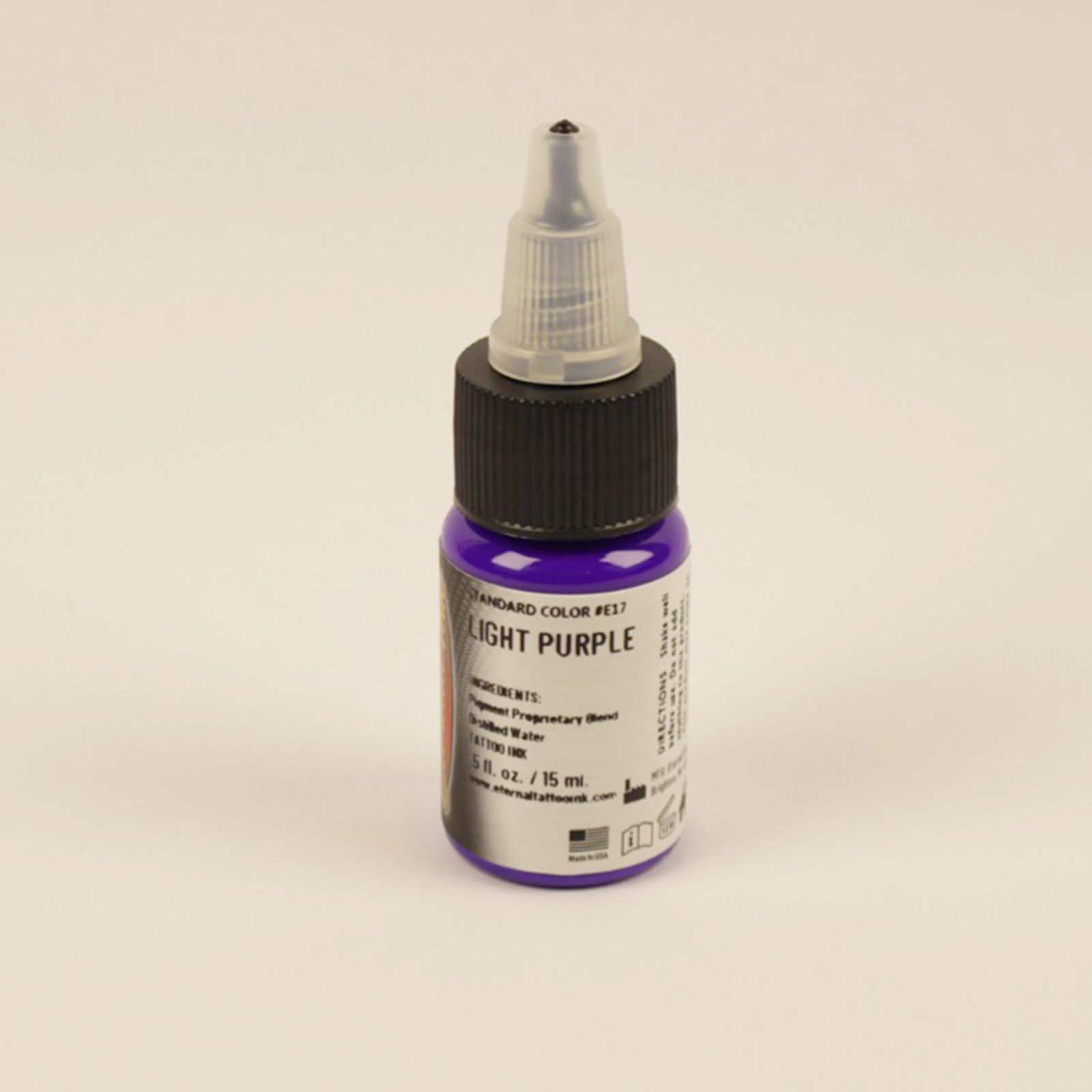 La tinta Eternal Ink Light Purple ofrece un tono violeta claro y luminoso, perfecto para crear transiciones suaves, efectos de luz o detalles en tatuajes de estilo realista, floral, new school y fantasía. Su color vibrante se mantiene estable con el paso del tiempo, sin perder brillo ni pureza.