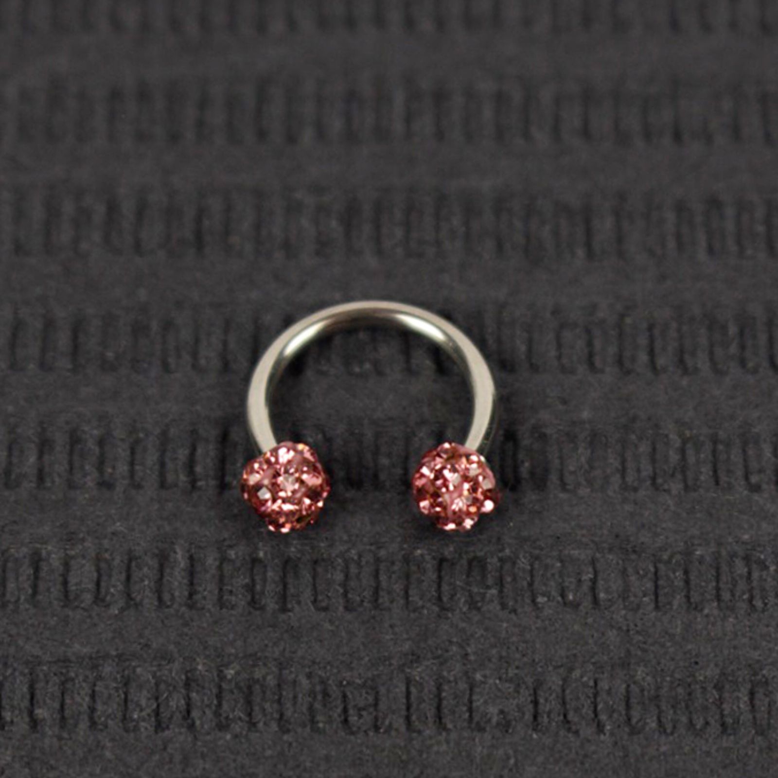 Piercing curvado fabricado en acero quirúrgico hipoalergénico, ideal para ceja, ombligo o rook. Sus dos esferas con incrustaciones brillantes en tono rosado aportan un toque delicado y moderno, manteniendo la resistencia y durabilidad del acero.